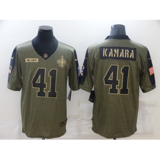 >Men's New Orleans Saints #41 Alvin Kamara Nike Olive 2021 Salute To Service Limited Player Jersey