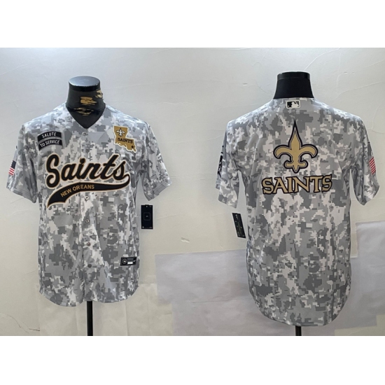 >Men's New Orleans Saints Team Big Logo 2024 Arctic Camo Salute To Service Stitched Baseball Jerseys