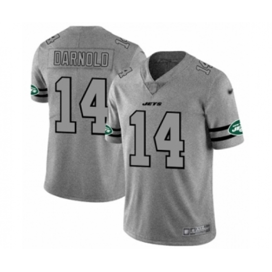>Men's New York Jets #14 Sam Darnold Limited Gray Team Logo Gridiron Football Jersey