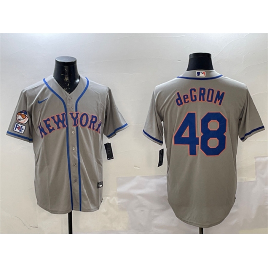 >Men's New York Mets #48 Jacob DeGrom Grey 2025 Spring Training Cool Base Stitched Baseball Jersey