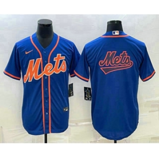 >Men's New York Mets Big Logo Navy Blue Cool Base Stitched Baseball Jersey