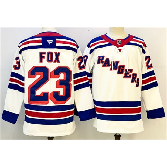 >Men's New York Rangers #23 Adam Fox White 2024-25 Away Stitched Hockey Jersey