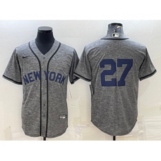 >Men's New York Yankees #27 Giancarlo Stanton No Name Grey Gridiron Cool Base Stitched Jersey