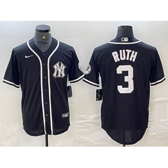 >Men's New York Yankees #3 Babe Ruth Black White Cool Base Stitched Jersey