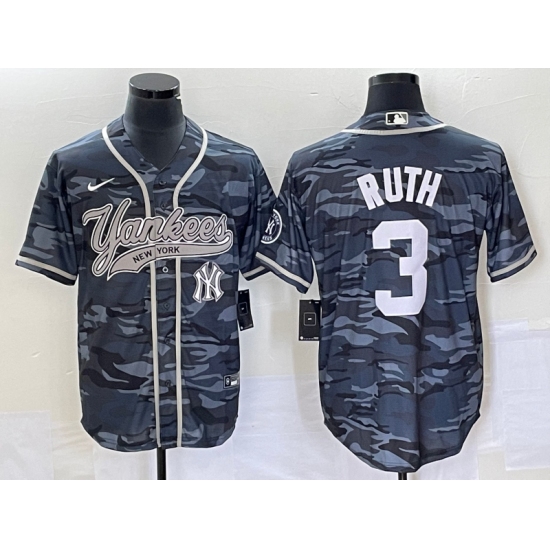 >Men's New York Yankees #3 Babe Ruth Grey Camo Cool Base Stitched Baseball Jersey1