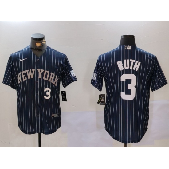 Men's New York Yankees #3 Babe Ruth Navy Pinstripe Fashion Cool Base Jerseys