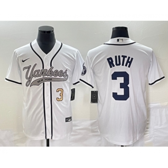 Men's New York Yankees #3 Babe Ruth Number White Cool Base Stitched Baseball Jersey
