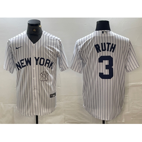 Men's New York Yankees #3 Babe Ruth White Pinstripe Fashion Cool Base Jerseys