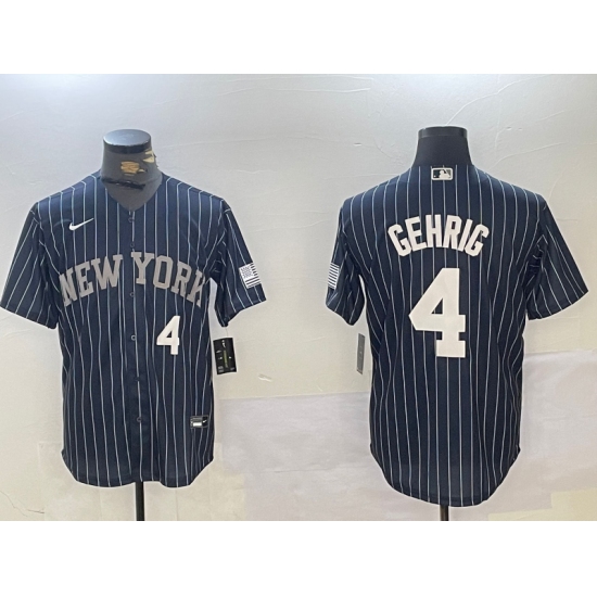 Men's New York Yankees #4 Lou Gehrig Navy Pinstripe Fashion Cool Base Jersey
