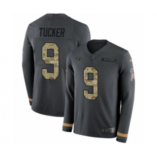Men's Nike Baltimore Ravens #9 Justin Tucker Limited Black Salute to Service Therma Long Sleeve NFL Jersey