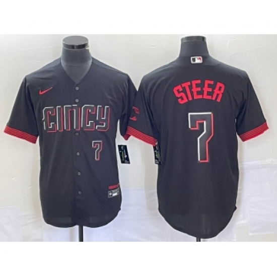 Men's Nike Cincinnati Reds #7 Spencer Steer Black 2023 City Connect Cool Base Stitched Baseball Jersey 1
