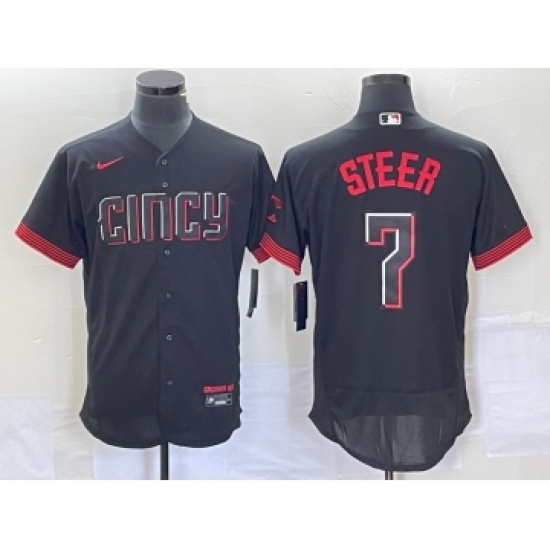 Men's Nike Cincinnati Reds Spencer Steer Black 2023 City Connect Flex Base Stitched Jersey 1