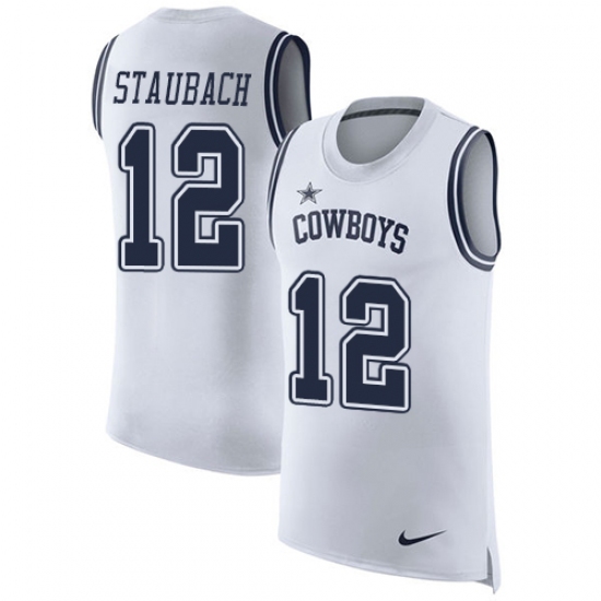 Home>NFL>Dallas Cowboys>Roger Staubach>Men's Nike Dallas Cowboys #12 Roger Staubach Limited White Rush Player Name & Number Tank Top NFL Jersey