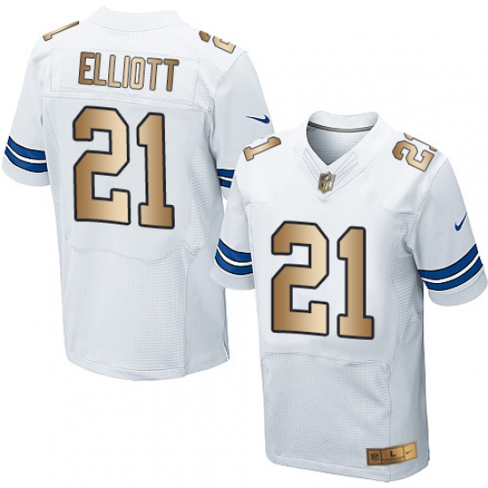 Home>NFL>Dallas Cowboys>Ezekiel Elliott>Men's Nike Dallas Cowboys #21 Ezekiel Elliott Elite White/Gold NFL Jersey