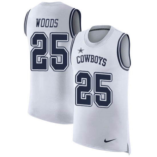 Home>NFL>Dallas Cowboys>Xavier Woods>Men's Nike Dallas Cowboys #25 Xavier Woods Limited White Rush Player Name & Number Tank Top NFL Jersey