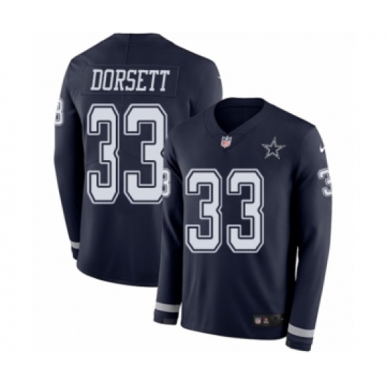 Men's Nike Dallas Cowboys #33 Tony Dorsett Limited Navy Blue Therma Long Sleeve NFL Jersey