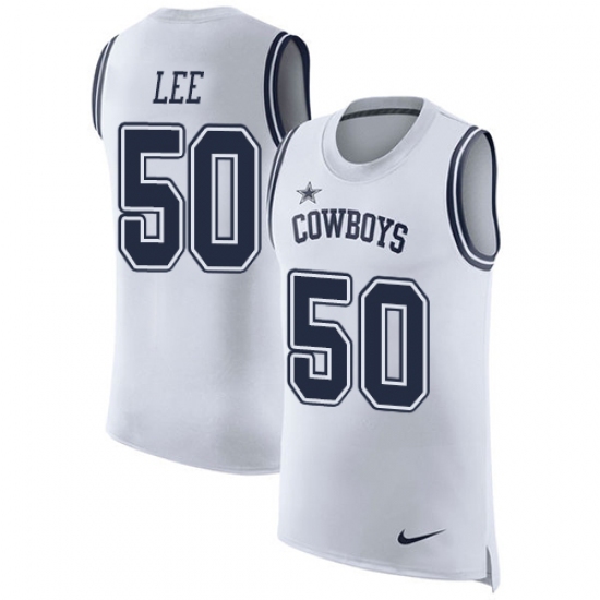 Home>NFL>Dallas Cowboys>Sean Lee>Men's Nike Dallas Cowboys #50 Sean Lee Limited White Rush Player Name & Number Tank Top NFL Jersey