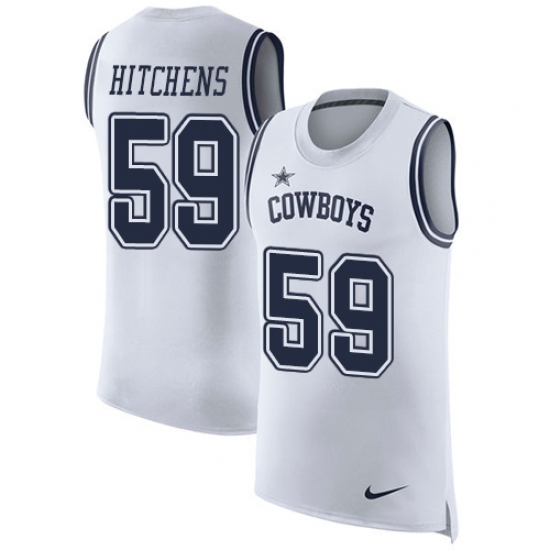 Home>NFL>Dallas Cowboys>Anthony Hitchens>Men's Nike Dallas Cowboys #59 Anthony Hitchens Limited White Rush Player Name & Number Tank Top NFL Jersey