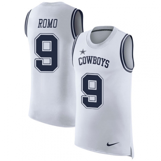 Men's Nike Dallas Cowboys #9 Tony Romo Limited White Rush Player Name & Number Tank Top NFL Jersey