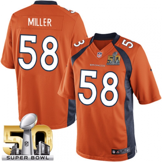 Men's Nike Denver Broncos #58 Von Miller Limited Orange Team Color Super Bowl 50 Bound NFL Jersey