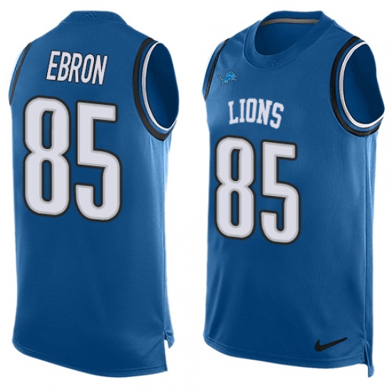 Men's Nike Detroit Lions #85 Eric Ebron Limited Light Blue Player Name & Number Tank Top NFL Jersey