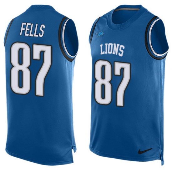 Men's Nike Detroit Lions #87 Darren Fells Limited Light Blue Player Name & Number Tank Top NFL Jersey