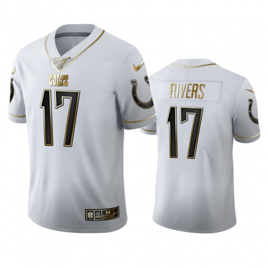 Men's Nike Indianapolis Colts #17 Philip Rivers White Golden Edition Vapor Limited NFL 100 Jersey