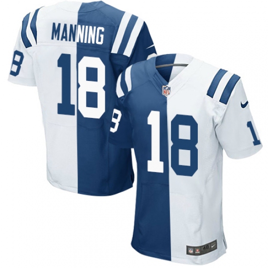 Men's Nike Indianapolis Colts #18 Peyton Manning Elite Royal Blue/White Split Fashion NFL Jersey