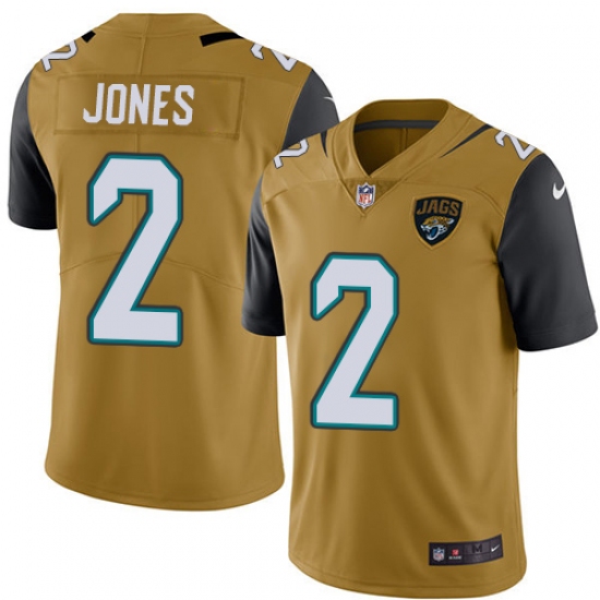 >Men's Nike Jacksonville Jaguars #2 Landry Jones Limited Gold Rush Vapor Untouchable NFL Jersey