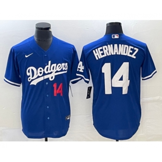 >Men's Nike Los Angeles Dodgers #14 Enrique Hernandez Number Blue Stitched Cool Base Jersey