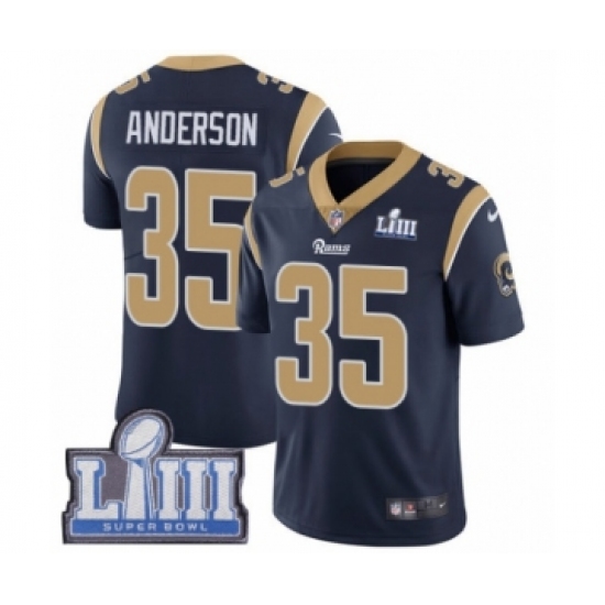 >Men's Nike Los Angeles Rams #35 C.J. Anderson Navy Blue Team Color Vapor Untouchable Limited Player Super Bowl LIII Bound NFL Jersey