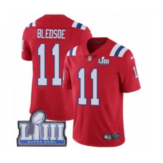 Men's Nike New England Patriots #11 Drew Bledsoe Red Alternate Vapor Untouchable Limited Player Super Bowl LIII Bound NFL Jersey