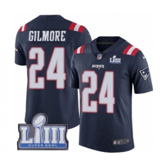 Men's Nike New England Patriots #24 Stephon Gilmore Limited Navy Blue Rush Vapor Untouchable Super Bowl LIII Bound NFL Jersey