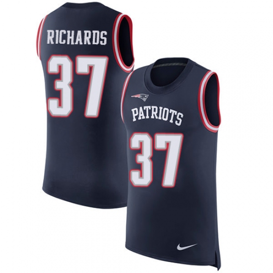 Men's Nike New England Patriots #37 Jordan Richards Limited Navy Blue Rush Player Name & Number Tank Top NFL Jersey