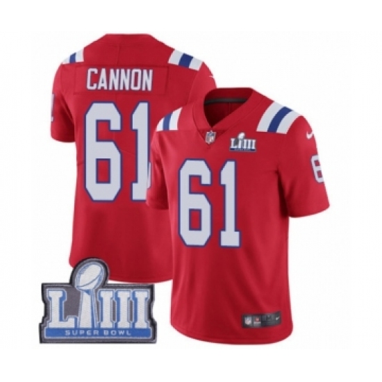 Men's Nike New England Patriots #61 Marcus Cannon Red Alternate Vapor Untouchable Limited Player Super Bowl LIII Bound NFL Jersey