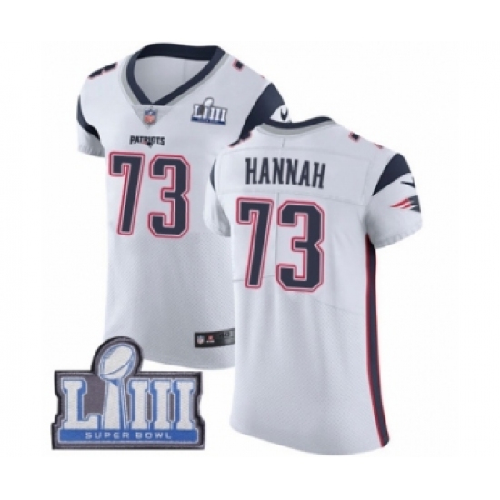 Men's Nike New England Patriots #73 John Hannah White Vapor Untouchable Elite Player Super Bowl LIII Bound NFL Jersey