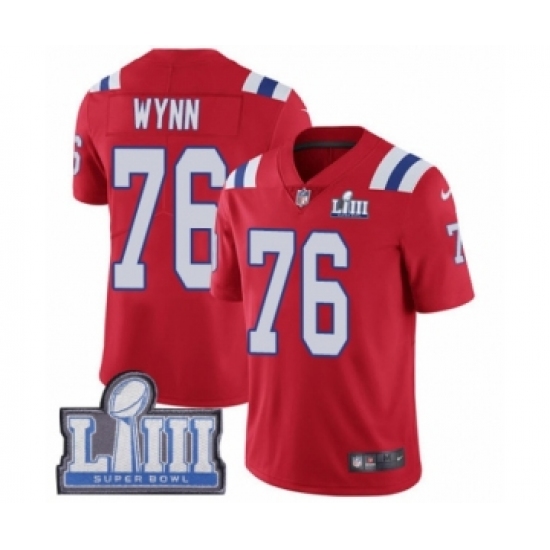 Men's Nike New England Patriots #76 Isaiah Wynn Red Alternate Vapor Untouchable Limited Player Super Bowl LIII Bound NFL Jersey