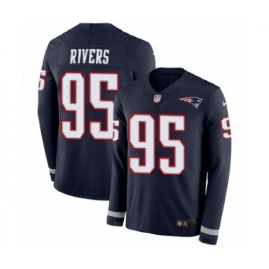 Men's Nike New England Patriots #95 Derek Rivers Limited Navy Blue Therma Long Sleeve NFL Jersey