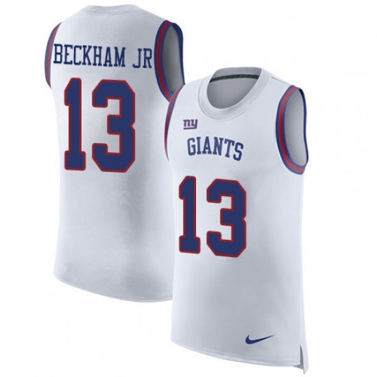 Home>NFL>New York Giants>Odell Beckham Jr>Men's Nike New York Giants #13 Odell Beckham Jr Limited White Rush Player Name & Number Tank Top NFL Jersey