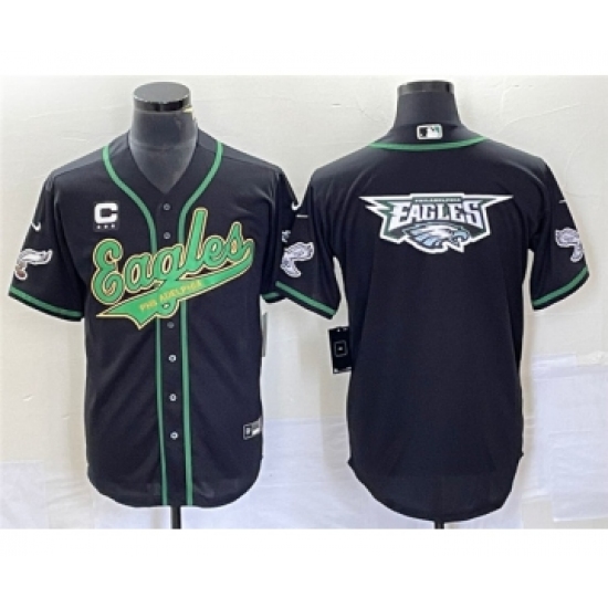 Men's Philadelphia Eagles Black Team Big Logo With Patch Cool Base Stitched Baseball Jersey