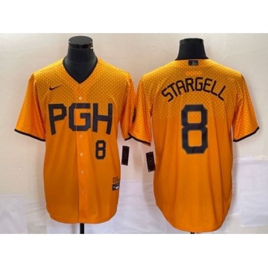 Men's Nike Pittsburgh Pirates #8 Willie Stargell Number Gold 2023 City Connect Stitched Jersey 1