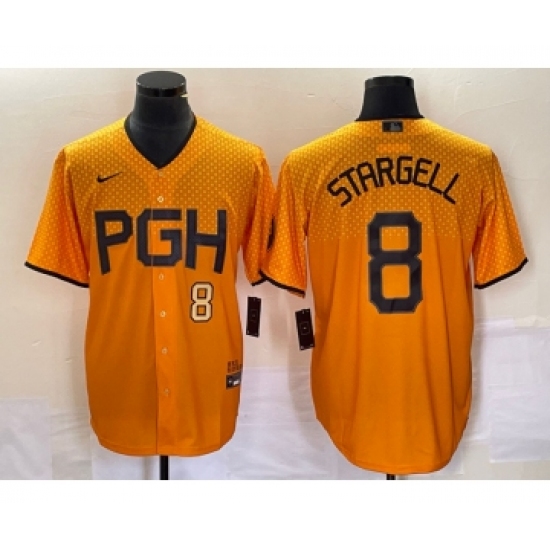 Men's Nike Pittsburgh Pirates #8 Willie Stargell Number Gold 2023 City Connect Stitched Jersey