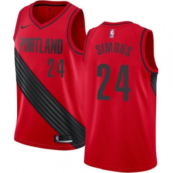 >Men's Nike Portland Trail Blazers #24 Anfernee Simons Swingman Red NBA Jersey Statement Edition