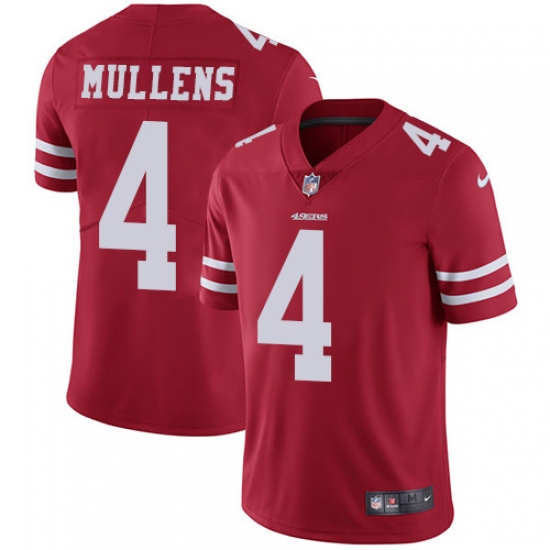 >Men's Nike San Francisco 49ers #4 Nick Mullens Red Team Color Vapor Untouchable Limited Player NFL Jersey