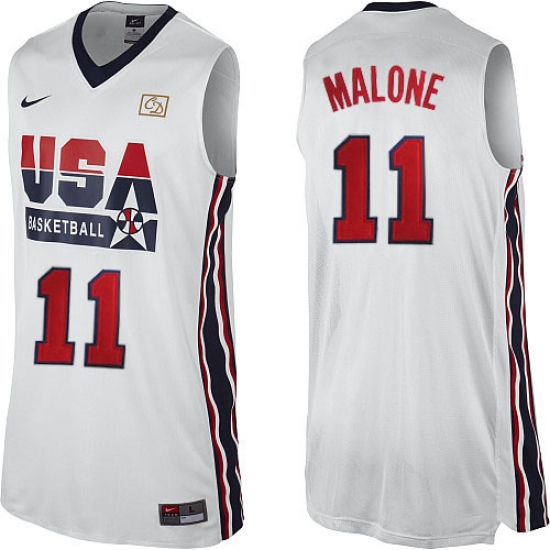 Men's Nike Team USA #11 Karl Malone Authentic White 2012 Olympic Retro Basketball Jersey