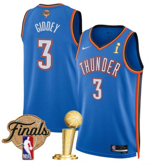 Men's Oklahoma City Thunder #3 Dillon Jones Blue 2025 Finals And Finals Champions Icon Edition Stitched Basketball Jersey