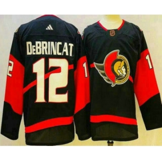 >Men's Ottawa Senators #12 Alex DeBrincat Black 2022 Reverse Retro Authentic Jersey