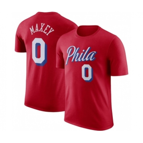 Men's Philadelphia 76ers #0 Tyrese Maxey Red 2022-23 Statement Edition Name & Number T-Shirt