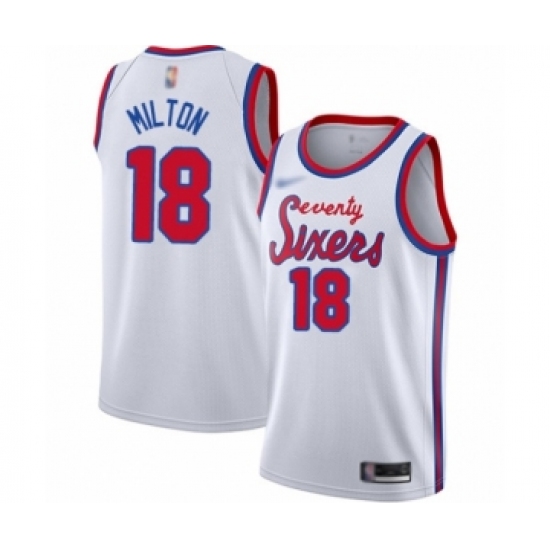 >Men's Philadelphia 76ers #18 Shake Milton Authentic White Hardwood Classics Basketball Jersey