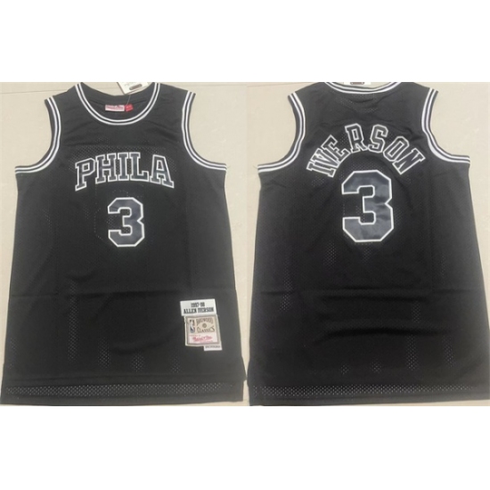 Men's Philadelphia 76ers #3 Allen Iverson Black 1997-98 Throwback Stitched basketball Jersey